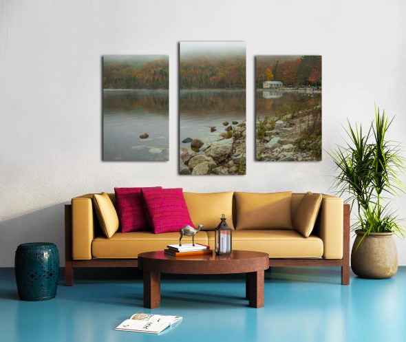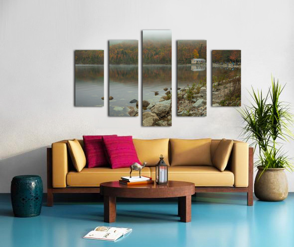 Foggy Autumn lake reflections Canvas print