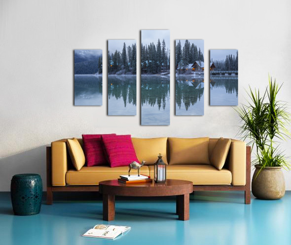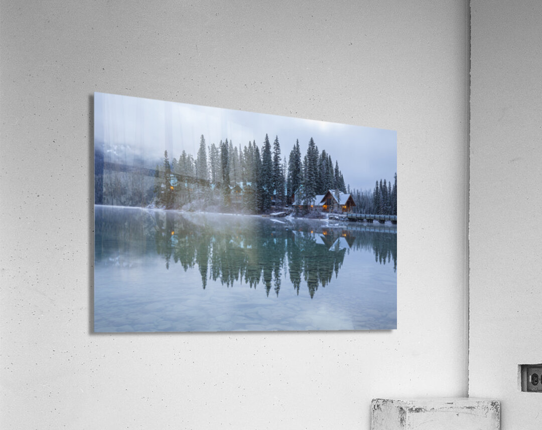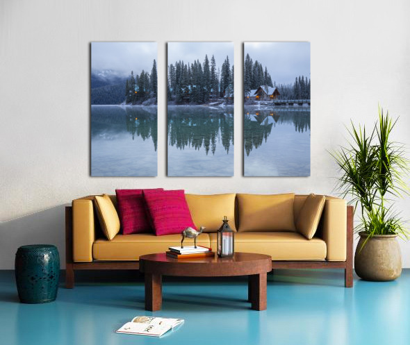 Misty Emerald Lake Chalet reflections Canvas print