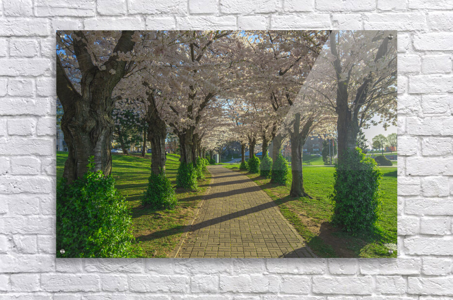ABOUT THIS ARTWORK: CHERRY BLOSSOM PATHWAY DURING SUNRISE