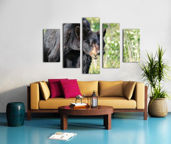 Black Bear eating grass Canvas print