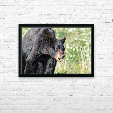 Black Bear eating grass Picture Frame Printing