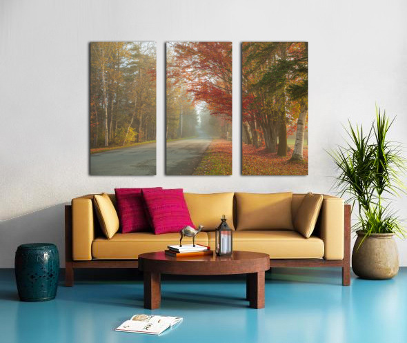 Foggy Morning Autumn Road Impression sur toile